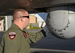 ![]() Boeing P-8 Poseidon с открытым бомболюком и двумя ракетами UGM-84 «Гарпун» подвешенными на пилонах крыльев, 20 июля 2014. | |