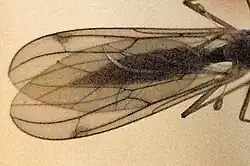 Передняя (r—m) и задняя (bm—cu) поперечные жилки удалены друг от друга, поэтому задняя основная ячейка значительно короче передней. Имеются три ветви ряда жилок: R1, R2+3 и R4+5, причём R2+3 короткая и оканчивается вблизи вершины R1. Жилка Sc полная и впадает в костальную жилку. Переднегрудь без длинных щетинок[2].