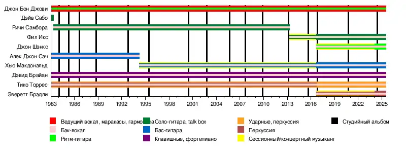 Джон Бон Джови Дэвид Брайан Тико Торрес Хью Макдональд Фил Икс Эверетт Брэдли[6] Джон Шэнкс[6] |