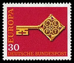 ![]() Логотип CEPT на марке ФРГ из выпуска «Европа», 1967 (Mi #533) | |
