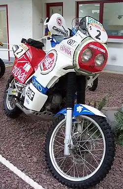 В 1980-е годы заводская команда мотоциклистов активно участвует в чемпионатах мира по мотокроссу, широко рекламируя марку Cagiva. Дважды, в 1985 и 1986 гг, компания получала титул чемпиона мира в классе 125 см³. Начиная с 1985 года модель Elefant, специально подготовленная и оснащённая, принимает участие в знаменитом ралли Париж-Дакар. Спортивное спонсорство прекращено в 1992 году.