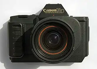 Canon T80 — первый малоформатный однообъективный зеркальный фотоаппарат фирмы Canon, оснащённый полноценным заобъективным автофокусом[1]. Камера производилась с апреля 1985 — по июнь 1986 года. За исключением автофокуса камера была полным аналогом T70. Питание фотоаппарата и привода автофокуса в объективе обеспечивалось 4 батарейками типа AAA, которые устанавливались непосредственно в корпус камеры, в отличие от Pentax ME-F, где батарейки размещались в приливе оправы. Камера имела встроенное электрическое лентопротяжное устройство, за счёт чего не имела ни рулетки обратной перемотки, ни курка взвода.