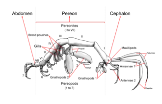 Каждый переонит несёт пару придатков, известных как переоподы (грудные конечности). Первые две пары модифицированы в хватательные придатки гнатоподы. Они используются для питания и защиты, а также для локомоции. 3-я и 4-я пары переопод обычно редуцированы или отсутствуют. 5—7-е пары переопод мельче, чем гнатоподы, и используются для прикрепления и заякоривания к объектам[4][5].