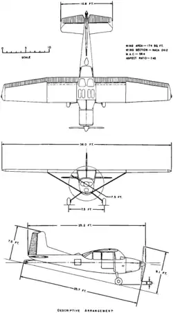 - Силовая установка: 1 ×ПД Continental O-470-11 с воздушным охлаждением, 213 л. с. (159 кВт)