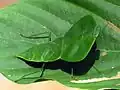 В целях самозащиты эти насекомые мимикрируют под листья.