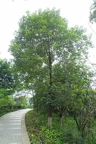 Среднее или крупное дерево высотой 16—25 м. Кора серого цвета, гладкая[3].
