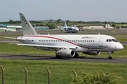 Sukhoi Superjet 100 в аэропорту Глазго Прествик, 3 июня 2016 года
