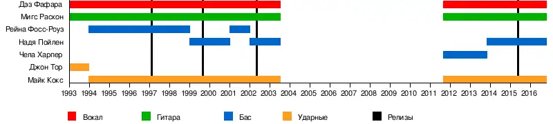 - Рейна Фосс-Роуз — бас (1994—1999, 2001—2002)