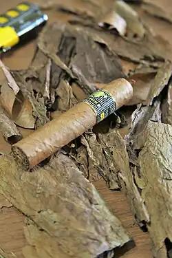Очень важный момент — отслеживание температуры. Если табак перегреть, то он потеряет свои вкусовые данные. Максимально допустимая температура составляет 42 градуса. При превышении температуры кучи дробятся на более мелкие. Таких ферментаций производится две, каждая из которых длится от 30 до 50 дней. Самая главная третья ферментация происходит уже на фабрике в дубовых бочках (что роднит табак с коньяком), куда листья складывают особым способом. Знаменитая тройная ферментация удаляет смолы и нитраты, делая вкус сигары более мягким и округлым.