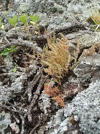 Однолетние растения характеризуются малоразветвленной структурой, часто имеют прямостоячие ветви, достигающие длины до 16 см, которые часто приобретают жилисто-деревянистый характер. Листья линейно-ланцетные, с длиной от 2 до 3,5 (или даже 5,3) мм и шириной от 0,4 до 0,9 (иногда до 1,3) мм, обладают острым бесцветным кончиком, который со временем становится тупым. Листья выше обычно более или менее плоские, в то время как снизу они выпуклые[1].