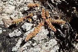 Соцветие представлено одним или несколькими колосовидными тирсами. Цветки, состоящие из 4 частей, имеют треугольные или линейно-ланцетные доли чашечки длиной 1,2–2,2 мм, которые к плодам удлиняются и могут быть от острых до заостренных, прямых или наклоненных, часто соприкасающихся друг с другом. Венчик цветка кремового цвета с красным оттенком, ланцетные лопасти длиной 0,6–0,8 мм, заостренные и продольно складчатые. Нектарные чешуи линейно-клиновидные, почти Т-образные, длиной 0,4–0,6 мм, шириной 0,1–0,3 мм, обычно разделены. Плодолистики конические, содержащие 2 семязачатка. Плоды представлены гладкими или мелкососочковыми листовками, освобождающими семена через апикальную пору или редко отделяющимися в основании от цветоложа; семена имеют длину от 0,3 до 0,5 мм, гладкие или с бугорками[1].