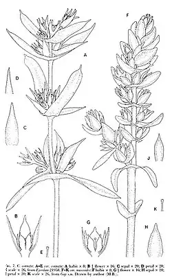 Соцветия часто компактные; цветков (1-)2 в узле. Цветоножки 0,2-6 мм. Цветки (3-)4[-5]-членные; чашелистики ланцетные, 0,5-2 мм длиной, на вершине острые до заостренных; лепестки узко-треугольные, 0,6-1,5 мм. Листовки восходящие, 1-2-семянные, яйцевидные; старые листовки восходящие, имеют форму ладьи. Семена эллипсовидные, 0,3-0,6 × 0,1-0,3 мм, не сосочковые, матовые, морщинистые[2].