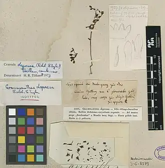 - 1 2 Crassula depressa (Eckl. & Zeyh.) Toelken | Plants of the World Online | Kew Science (англ.). Plants of the World Online. Дата обращения: 21 января 2024. Архивировано 3 марта 2024 года.