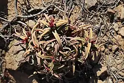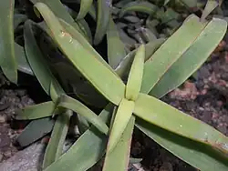 Молодые растения начинают с яйцевидных листьев, но постепенно они сужаются, принимая форму типичных ланцетных листьев[4].