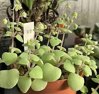 Растение имеет очень нежную структуру и может быть спутано с формами Crassula dentata, но отличается от них серо-зелеными листьями и неглубокими чашевидными цветками[4].