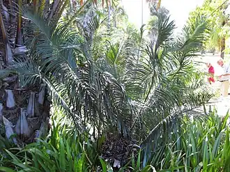 Стволы от древовидных до бесстеблевых, 1 м высотой, 10-15 см диаметром в узком месте; 5-20 листьев в кроне. Листья тёмно-зелёные, полуглянцевые, длиной 100-180 см. Пыльцевые шишки веретеновидные, от оранжевых до коричневых (очень бледные), длиной 20-40 см, 6-14 см диаметром. Мегаспорофилы 10-20 см длиной, жёлто- или коричнево-войлочные. Семена почти шаровидные, 23-29 мм длиной, 22-28 мм в ширину; саркотеста жёлтая, не покрыта налётом, толщиной 1,5 мм.