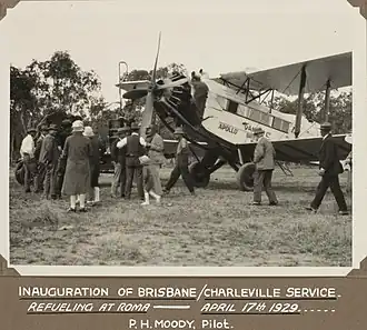 ![]() Первое прибытие QANTAS DH.61 Apollo, доставившего почту в Брисбен, 23 апреля 1929 года | |