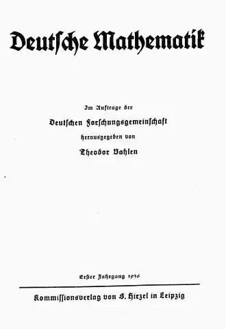 Deutsche Mathematik также название движения, тесно связанного с журналом, призванного содействовать «немецкой математике» и ликвидации «еврейского влияния» по аналогии с движением немецкая физика.