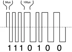 Станция DCC в паре с её усилителем (бустером) на короткое время меняют полярность источника питания, а затем возвращают обратно, тем самым сигнал представляет собой последовательность импульсов. Кодирование логической единицы и логического нуля происходит по разнице промежутка времени инверсии: логическая единица по длительности равна примерно 57,5(допуск+-1,5) микросекундам, логический ноль длиннее — минимум 98 мкс(допустимый максимум - 9,9 миллисекунд). Пауза между сигналами в пакете равна продолжительности инверсии. Тем самым инверсия длится полцикла. Между посылками команд, некоторые станции умеют делать паузы, для ответа локомотивов - таким образом станция может "узнать" локомотив на конкретном блок-участке, но это требует более дорогих модулей детекторов занятости и декодеров локомотива, умеющих отвечать в одном стандарте.