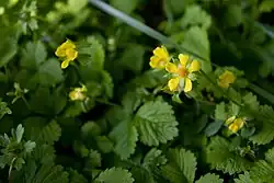Duchesnea chrysantha (лат.) — вид травянистых растений рода Дюшенея (Duchesnea) семейства Розовые (Rosaceae).