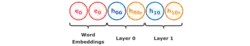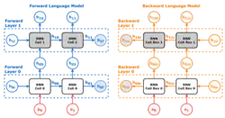 ELMo включает многослойную двунаправленную LSTM, которая накладывается на слой встраивания токенов. Входная последовательность сначала преобразуется в векторные представления с помощью слоя встраивания. Затем применяются два параллельных процесса: