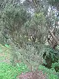 Микро-мезофанерофит, обычно принимающий размер кустарника, но который может достигать около 6 м в высоту в местах, защищенных от ветра и с плодородной почвой. Листья светло-зеленые, что придает растению контрастный цвет с большей частью естественной растительности Азорских островов, обычно сине-зеленой. Весной дистальная часть ветвей имеет отчетливый коричневатый цвет[4].