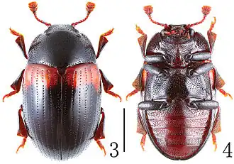 Жуки темно-коричневой или чёрной окраски у многих групп имеется контрастный оранжево-красный рисунок из пятен или перевязей[2].