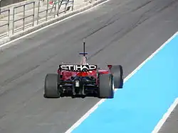 - В сезоне 2007 года Etihad стал одним из титульных спонсоров команды Etihad Aldar Spyker F1 Team. Поскольку в итоге команда была продана владельцу другой авиакомпании (Виджей Малья, Kingfisher Airlines), Etihad стала спонсировать Scuderia Ferrari начиная с сезона 2008 года.[14]