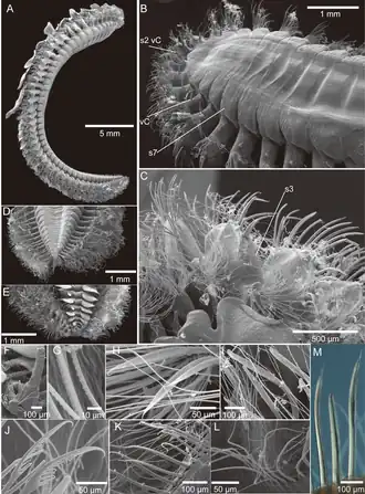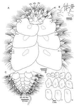 - ↑ Pettibone, Marian H. (1986). Additions to the family Eulepethidae Chamberlin (Polychaeta: Aphroditacea). Smithsonian Contributions to Zoology. 441: 1—51., https://doi.org/10.5479/si.00810282.441 page(s): 19