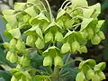 Вертикально растущий, компактный вечнозелёный кустарник высотой и шириной до 1,2 м, с сильно волосистым стеблем. Листья линейно-ланцетные, до 13 сантиметров в длину и шириной до 1 см. Цветки небольшие, не имеют лепестков, лежат в окружении плотных скоплений зеленовато-жёлтых прицветников. Плоды — капсулы, содержащие 3 семени. Цветёт с апреля по июнь.