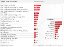 Общая площадь проходившей в 2009 году EXPO REAL составила 63 000 м². В выставке участвовали 1 580 фирм-экспонентов из 34 стран, а также 21 000 посетителей-специалистов из 73 стран мира.