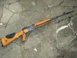 В задней части цевья в центре тяжести винтовки к цевью крепятся складные и регулируемые по высоте сошки, при переноске винтовки они складываются вперед и убираются в пазы по обеим сторонам ствольной накладки. Сошки используются всегда, за исключением случаев, когда огонь ведётся из-за укрытия (например, из-за невысокой стены). Длина подпружиненных ножек сошки регулируется при помощи установленных на них хомутов. Сошка складывается при полностью убранных ножках.