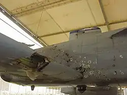 2. На обшивке хвостовой части фюзеляжа следы осколочных поражений готовыми осколками БЧ ракеты
