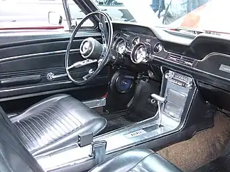 В 1965 году в стандартный интерьер Mustang введены раздельные регулируемые сиденья водителя и пассажира, радиоприёмник с амплитудной модуляцией (AM), напольный рычаг переключения передач. Также опционально были доступны солнцезащитные козырьки, механическое дистанционное управление зеркалом, напольная консоль и нераздельное переднее сиденье. Также одним из вариантов интерьера был Rally-Pack: часы и тахометр с креплением на рулевой колонке. Он был доступен за $69,30 (с установкой у дилеров — $75,95).