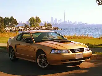 Обновленная модель с дизайном, базирующимся на концепции «New Edge», появилась в 1999 году. Большинство плавных линий, имевшихся у модели 94-98 годов, ушли в прошлое, но Mustang всё ещё базировался на платформе SN-95. Базовая модель по-прежнему оснащалась двигателем V6 объёмом 3,8 литра. Благодаря новым головкам блока цилиндров, впускным и выпускным коллекторам мощность возросла по сравнению с версиями на дорестайлинговых автомобилях до 190 л. с. (142 кВт) при 5250 об/мин. А с внедрением в 2001 году впускного коллектора с изменяемой геометрией — до 193 л. с. (144 кВт) при 5500 об/мин. Мощность GT-модификации была увеличена до 260 л. с. (194 кВт) при 5250 об/мин, крутящий момент — до 409 Н·м при 4000 об/мин за счёт применения новых «Power Improved» (PI) головок блока, валов и впускного коллектора. Новый 16-клапанный 4,6-литровый двигатель стал несколько мощнее двигателей, применявшихся в 1996—1998 годах. Mustang обзавёлся топливной магистралью постоянного давления с использованием связанного с PCM датчика давления топлива[22].