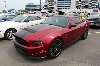 Весной 2012 года были представлены версии 2013 модельного года: V6 и GT получили воздухозаборники и решетки как у версии GT500 2011 года. Двигатель версии GT увеличил мощность на 8 л. с. (до 420 л. с. (313 кВт)). Shelby GT500 получил новый двигатель 5.8L V8 мощностью 662 л. с. (494 кВт) (что являлось рекордом для двигателей V8 до выхода драговой модификации Dodge Challenger Demon мощностью 740 л. с.)[29] и максимальную скорость более 320 км/ч. Светодиодные передние фонари теперь стандарт, а не опция. 6-ступенчатый автомат получил возможность ручного переключения (опционально).