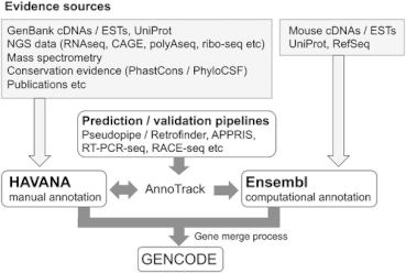Помимо группы HAVANA, в состав консорциума GENCODE входило ещё несколько групп, проводивших анализ аннотированных локусов с помощью программ Ensembl и помогавших аннотаторам в идентификации пропущенных либо неверно аннотированных локусов, в том числе сайтов сплайсинга. Для обмена информацией между группами использовалась трекинговая система AnnoTrack[24]. В процессе также использовались данные экспериментов РНК-секвенирования, CAGE и Ditag[25].