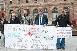 - ↑ Gay Activists Protest Inaction of European Human Rights Court in Strasbourg Demo. Дата обращения: 29 июля 2009. Архивировано 6 января 2011 года.