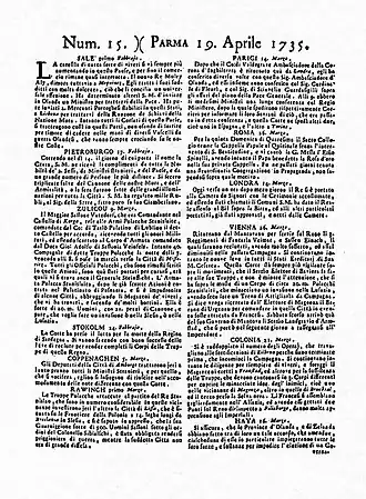 - Национальная центральная библиотека Рима: «Gazzetta di Parma» (1767—1796 годы)