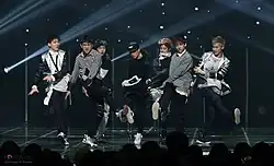 ![]() Got7 в феврале 2018 года в Бангкоке. Слева направо: Югём, Джексон, Бэм-Бэм, Марк, Джей-Би, Ёнджэ и Джинён | |