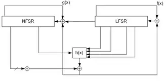 В качестве аргументов функция принимает значения битов из LFSR и NFSR: