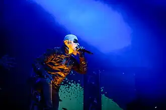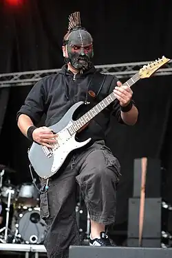 В этот период у басиста была обычная, как и у гитариста, одежда, а вот с маской дела поинтересней. Маска (как и будет в будущем) имеет следующую комплекцию: Форма напоминает мешок, рот завязан и имеются вырезы под глаза. Также есть хвост. Сама маска напоминает маску висельника. У «Юга» в этот период был весьма интересный образ. Футболка с логотипом группы, и однотонная маска хорошо дополняют друг друга (как кажется автору статьи).