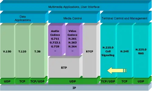 - H.245 — для согласования параметров соединения;