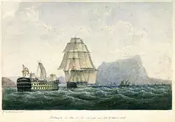 После того как Вильнев отплыл из Тулона в Вест-Индию 29 марта 1805 года с эскадрой из одиннадцати линейных кораблей, шести фрегатов и двух шлюпов, Belleisle в составе эскадры Нельсона устремился за ним в погоню. Британцам так и не удалось обнаружить там франко-испанский флот, а 12 июня Нельсон узнал об уходе союзников и он с 11 кораблями вновь пустился в свою неутомимую погоню. Однако Вильнёв взял курс на Ферроль, а Нельсон на Кадис, полагая что противник направляется в Средиземное море[8].