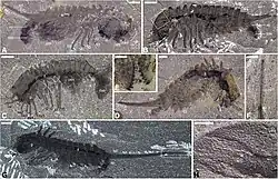 - 1 2 Aria C., Caron J.-B. Mandibulate convergence in an armoured Cambrian stem chelicerate (англ.) // BMC Evolutionary Biology : journal. — 2017. — Vol. 17, iss. 1. — P. 261. — ISSN 1471-2148. — doi:10.1186/s12862-017-1088-7. — PMID 29262772.