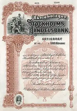 - 1 2 3 Stockholms handelsbank Архивная копия от 4 августа 2016 на Wayback Machine, Nordisk familjebok, vol. 27 (1918)