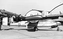 - Двигатель — один BMW-003 с тягой 800 кг Для быстрого взлёта могли использоваться ракетные ускорители Walter Ri 502, которые крепились на фюзеляже за нишами шасси.