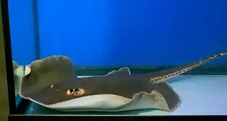 - ↑ Last, P.R., Naylor, G.J.P. and Manjaji-Matsumoto, B.M. A revised classification of the family Dasyatidae (Chondrichthyes: Myliobatiformes) based on new morphological and molecular insights // . Zootaxa. — 2016. — Vol. 4139, № 3. — P. 345-368. — doi:10.11646/zootaxa.4139.3.2..