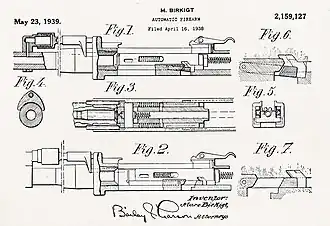 Новая пушка разрабатывалась на затворном механизме, запатентованном в 1919 году американским инженером-оружейником Карлом Свебелиусом Carl Swebilius.[2] Изобретатель Марк Биркигт назвал эту систему комбинацией газоотвода и полусвободного затвора, (немецк. eine Kombination zwischen einem verriegelten Gasdrucklader und einem unverriegelten Masseverschluss in der zweiten Phase). Энергия отводимых пороховых газов использовалась только для отпирания затвора. Откат затвора в заднее положение осуществлялся давлением газов на дно гильзы, как у автоматов с отдачей полусвободного затвора. А далее затвор совершал возвратно-поступательные движения под действием возвратной пружины.