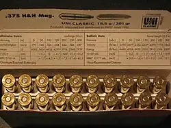 - .375 Н&Н Magnum — возможно, наиболее популярный крупнокалиберный охотничий патрон в настоящее время[7]. Запущен в серийное производство в 1912 году.